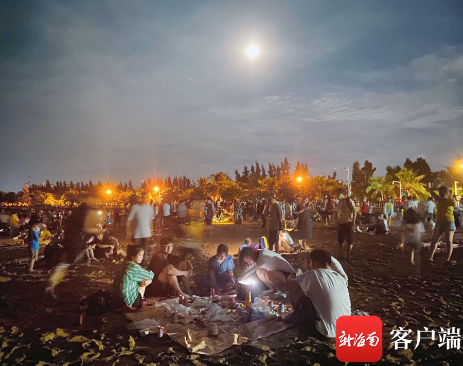 “海邊吹著海風,和家人一起,帶著月餅來這里賞月啦,很是愜意呢。”家住在海甸島的陳先生說,中秋之夜,能和家人一起過節,心里感到一絲滿足,一家人在海邊游玩賞月,非常舒適。