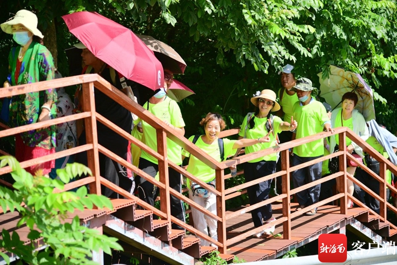活動當(dāng)天,游客們滿懷著激情來到了活動現(xiàn)場。在啟動儀式結(jié)束后,游客們便開始了紅角嶺登山觀海游3公里的徒步環(huán)節(jié)。徒步之路從一條紅角嶺棧道開始,棧道九拐十八彎,引領(lǐng)著每一位游客走進(jìn)紅角嶺。游客在徒步的過程中,向外遠(yuǎn)眺能看見不同海拔的香水灣海景,向下俯瞰能看見山腳下的風(fēng)景。許多游客紛紛舉起手機(jī)和相機(jī),拍下這一幕幕靚麗的風(fēng)景,或是與友人合影,紀(jì)念下這美好的一刻。
