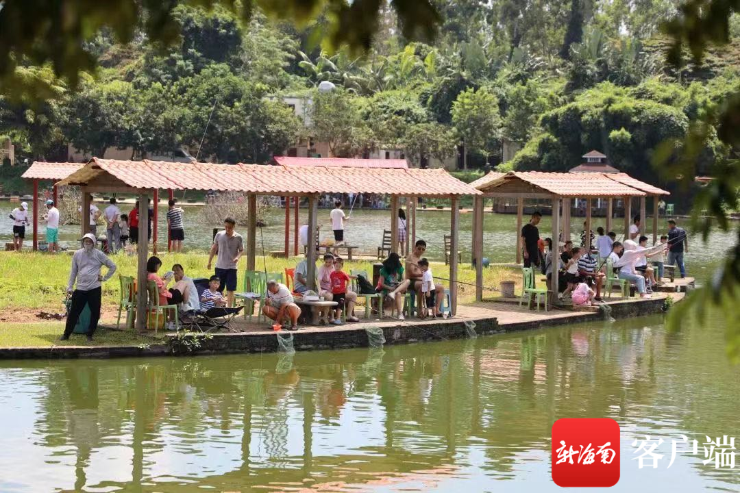 游客在海口火山休閑農莊垂釣。海口旅文局供圖