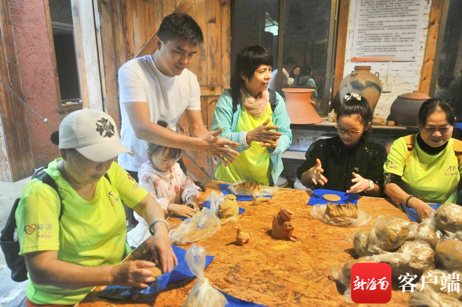 隨后,游客們又來到黎族陶藝館參觀。許多游客都親自參與制陶體驗,其中不乏親子家庭,帶著孩子一起體驗帶有鮮明民族特色的黎族制陶術,既感受了黎族文化,也增進了親情。