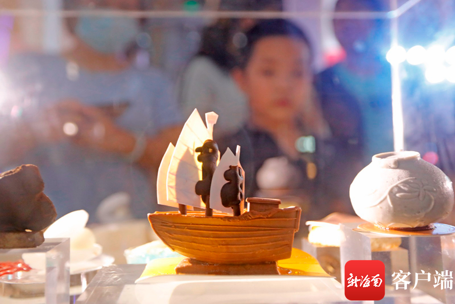 2020年11月,海南省博物館在12周年館慶來臨之際推出了一系列活動,其中還包括了這些 有趣的文創產品:華光礁Ι號海鹽巧克力福船、青釉纏枝蓮紋黑芝麻雙耳小瓶、青白釉印花椰子慕斯粉盒、更路簿翻糖餅干、沉香巧克力餅干、海洋布丁杯、珍珠貝 殼紅珊瑚糖、元寶錢幣巧克力……8件看起來像文物,實際上是食物的精致甜點組成了“南溟奇甸之南溟泛舸”系列文創產品,是此次海南省博物館發布的“可以吃 的文創”中造型最為逼真的。這一文創產品以省博物館中的展品為創作藍本,展現了重現古時海南海洋與貿易的繁榮盛況。