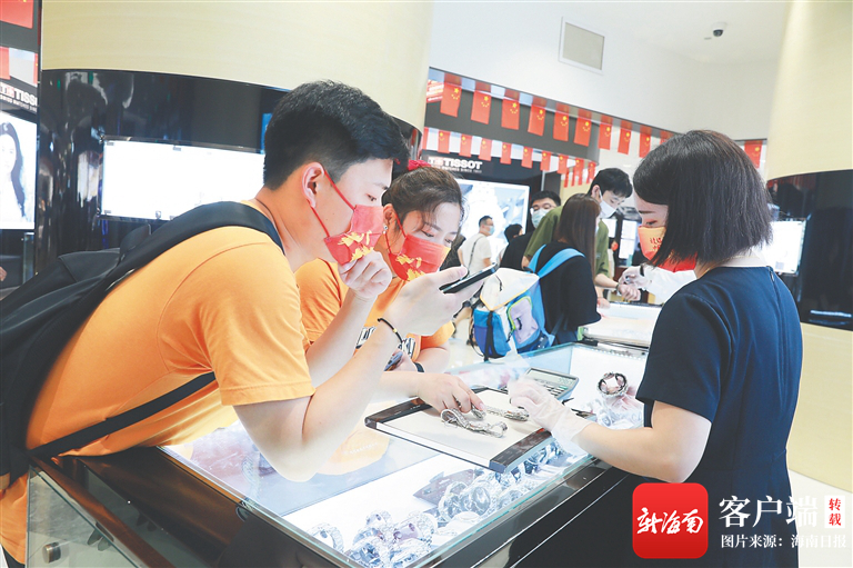 資料圖:在海口日月廣場免稅店,不少消費者在免稅店柜臺前開啟“買買買”模式。記者 周達延 攝