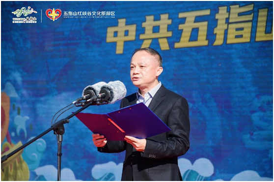 海南省旅游和文化廣電體育廳全域旅游處處長朱悅曠宣讀五指山紅峽谷文化旅游區(qū)評(píng)定為國家AAAA級(jí)旅游景區(qū)的公告,并對(duì)景區(qū)評(píng)定成功表示熱烈的祝賀。