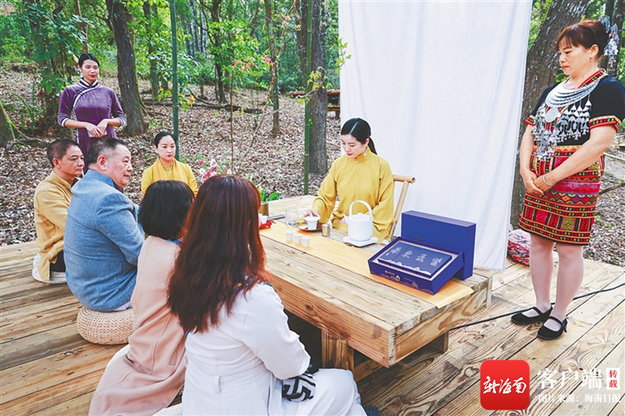 “這個環(huán)境布置得太美好了,好像進(jìn)入了藝術(shù)的空間。”特意從海口趕來參加活動的游客潘少紅說。她端起茶杯輕品一口,被五指山紅茶的“琥珀湯、奶蜜香”典型特征所折服。