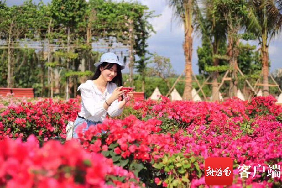 春節期間,以“田園花海傳承愛”為主題的2022海口三角梅花展,花開正艷,市民游客可在共享農莊里游花海、購花物、品花宴、宿花田。藝術民宿、自然果園、親水棧道……一派熱帶田園風光的芳園藝術村美如畫,游玩項目有七彩跳跳房、攀爬設施、趣味木制探險穿越等,讓孩子在“寶藏地”一站式游玩。