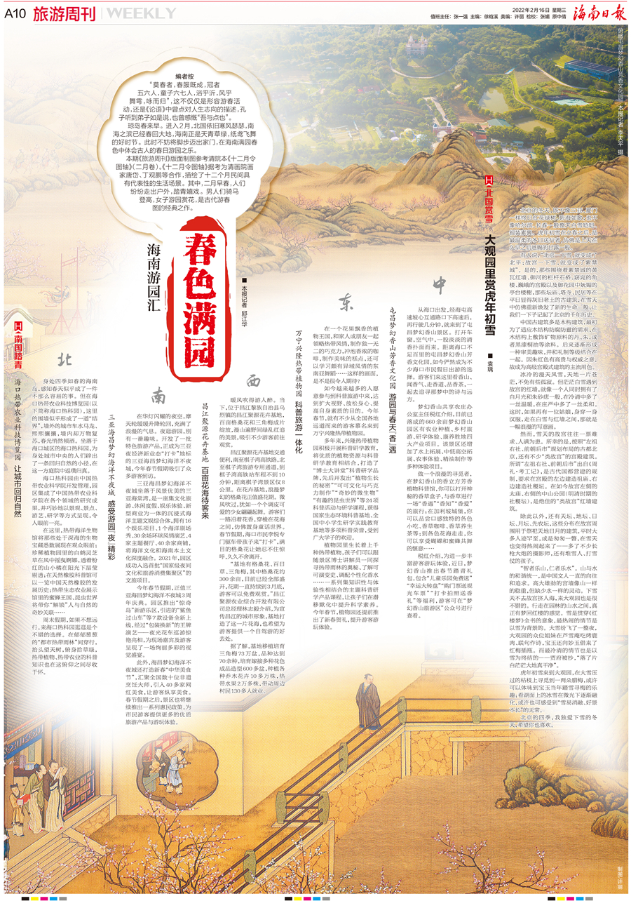 瓊島春來早。進入2月,北國依舊寒風瑟瑟,南海之濱已經春回大地,海南正是天青草綠,紙鳶飛舞的好時節。此時不妨將腳步邁出家門,在海南滿園春色中體會古人的春日游園之樂。
