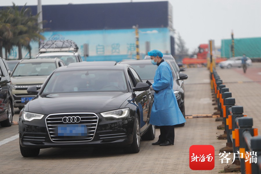 防疫人員在檢查進港車輛人員健康碼等。記者汪承賢攝