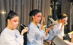 準備上臺的演員正在化妝。