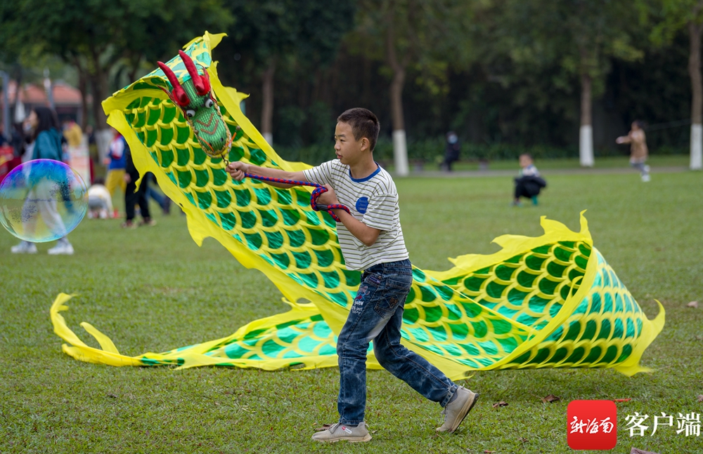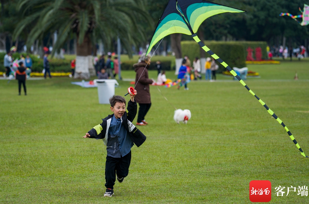 在海口市萬綠園,小朋友在放風箏。記者 劉孫謀 攝