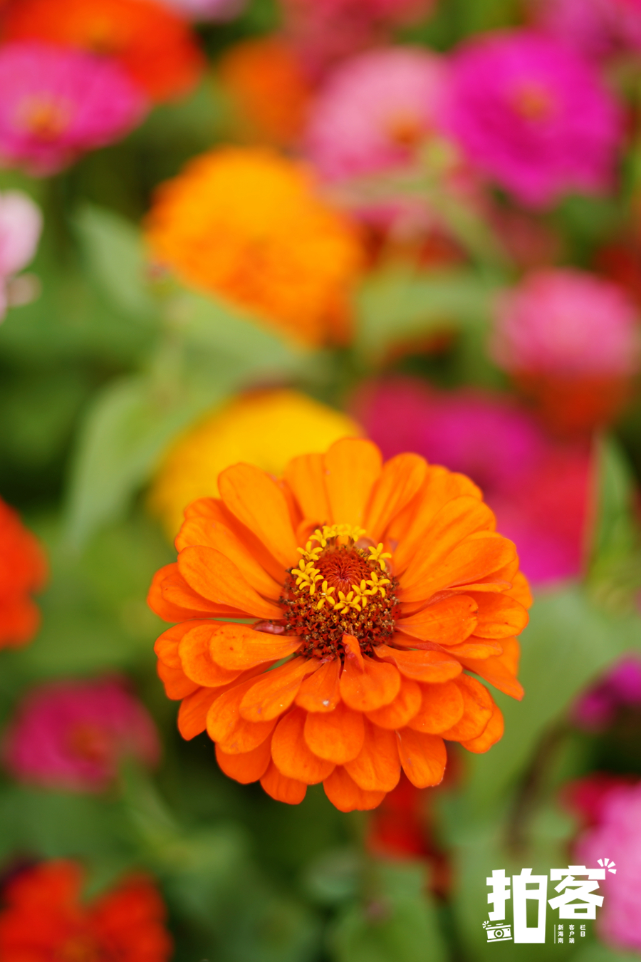 花海的五顏六色點綴了點亮了自然與生活的幸福感。在東方市八所鎮上紅興村,百日菊開得燦爛。
