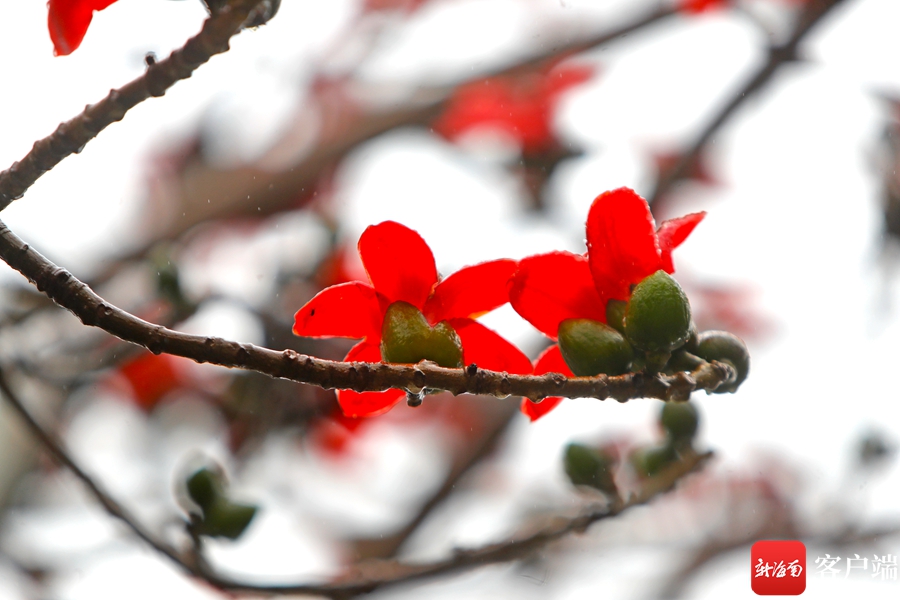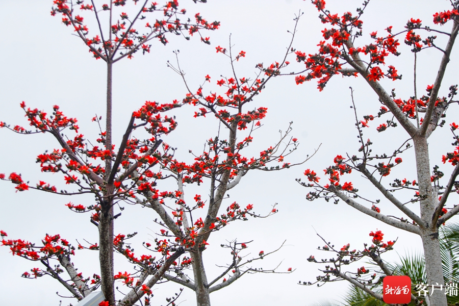 萬綠園、鳳翔濕地公園有幾株木棉樹開出了鮮艷的花朵,而市區木棉樹最集中的五指山路,也有十余株木棉樹開了花。