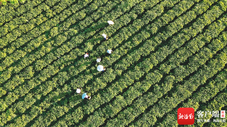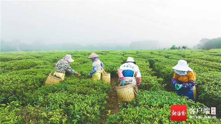 遠眺漫山遍野的茶樹,瓊島茶葉已悄然萌發肥厚的枝芽。茶人們隨著時節而動,在嫻熟的技藝下,一縷縷天涯茶香裊然飄起。