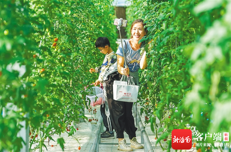 游客在三亞大茅遠洋生態村莊園體驗采摘番茄。記者 武威 攝