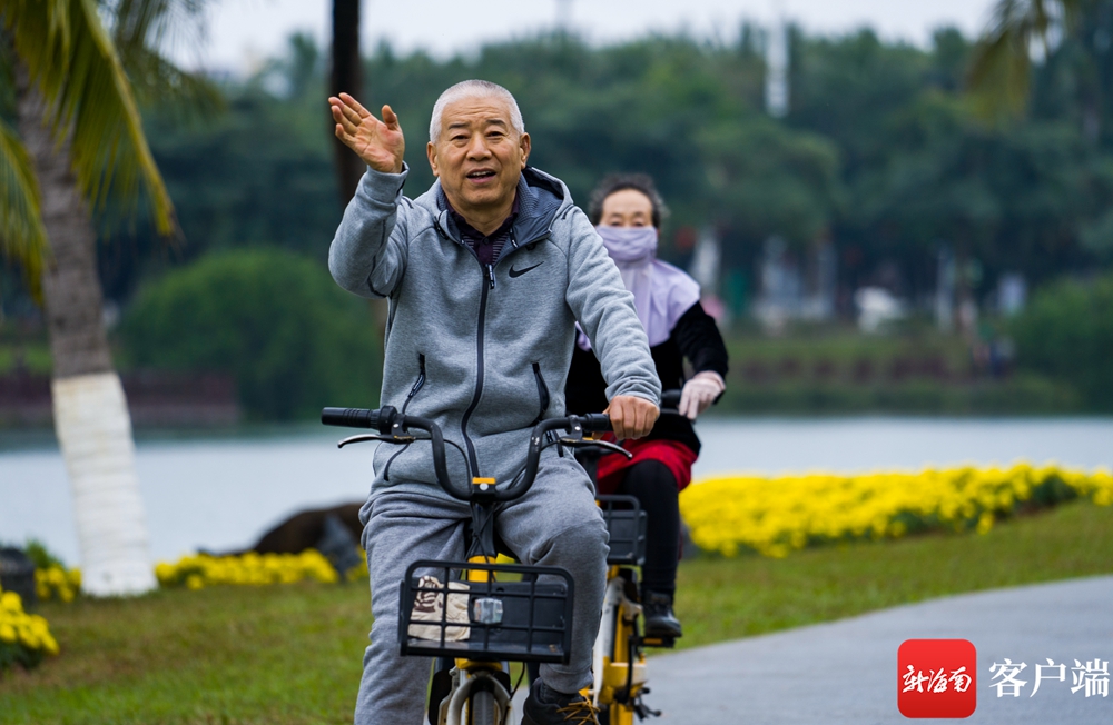 在海口市萬綠園,市民在騎行。記者 劉孫謀 攝