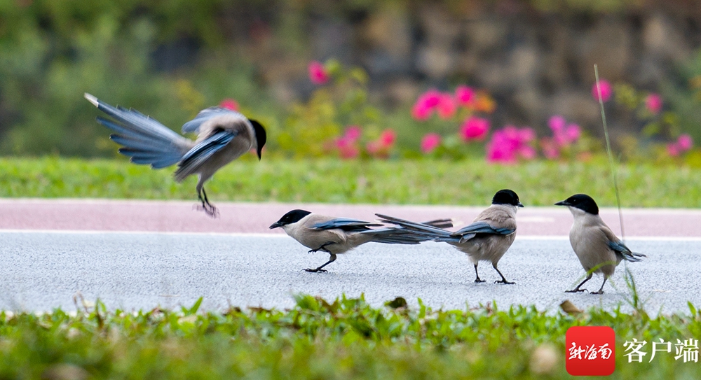 在海口市萬綠園,鳥兒在覓食。記者 劉孫謀 攝