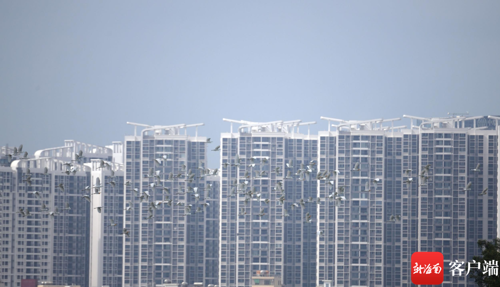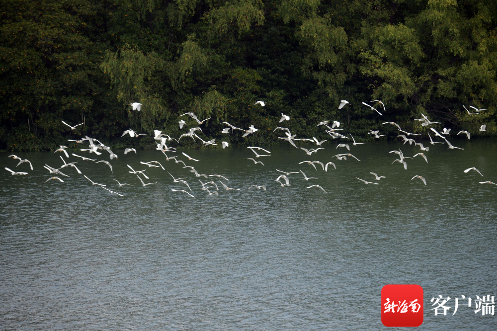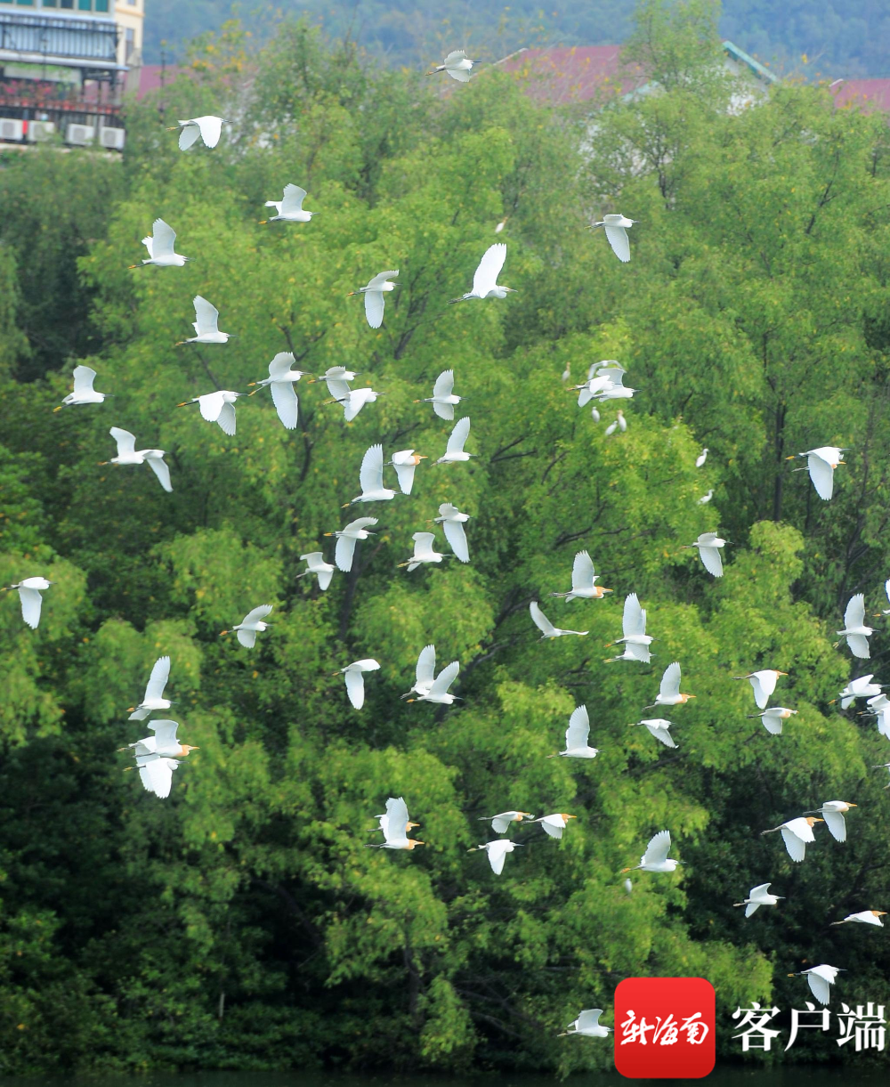 3月26日,成群的白鷺在三亞河飛舞。記者 沙曉峰攝