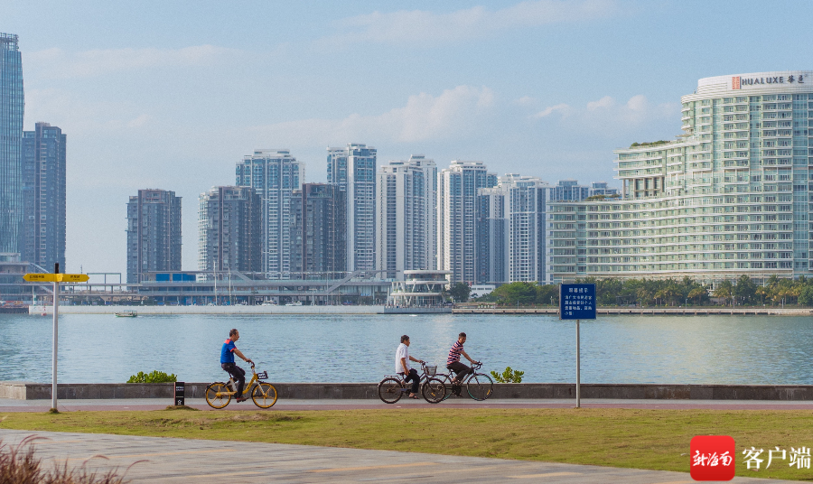 ??跒彻珗@騎行的女孩,眺望著對岸建設中的新廣場。