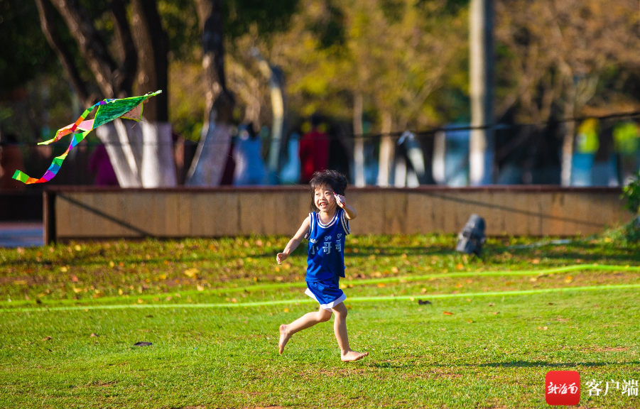 海口灣公園放風箏的老人,用風箏感受著季節轉換。