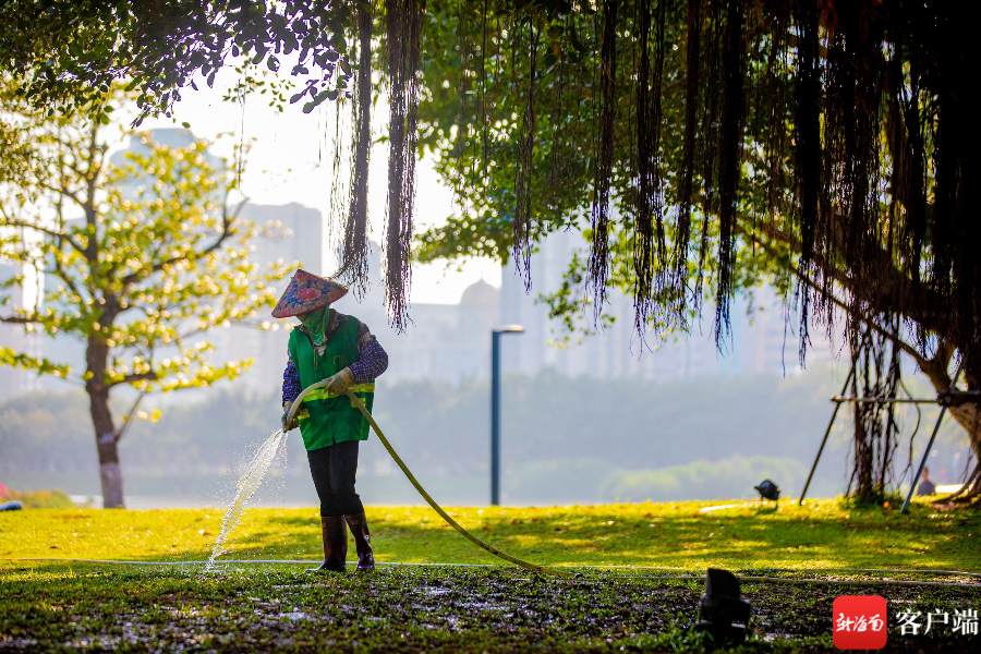初春萬綠園的清晨,環衛工人在辛勤勞動。