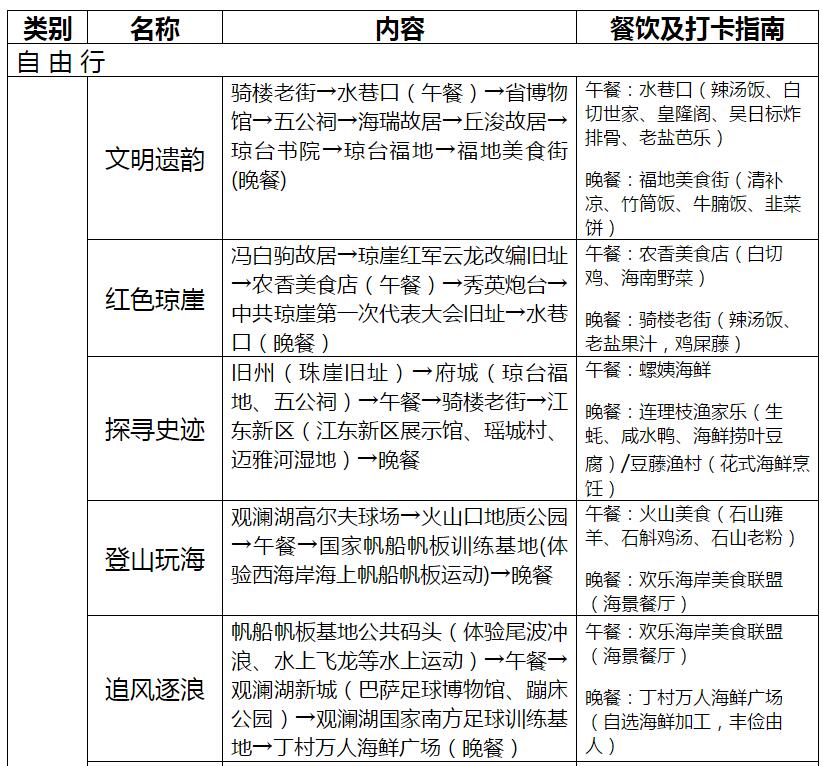 海口23條旅游線路產品信息一覽表