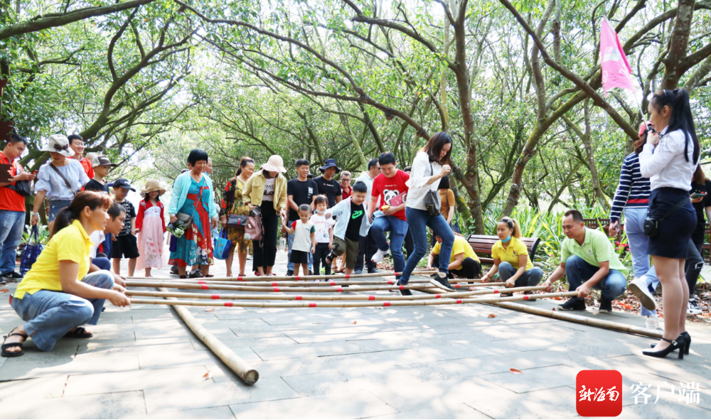 游客在火山口體驗民俗風情。海口旅文局供圖