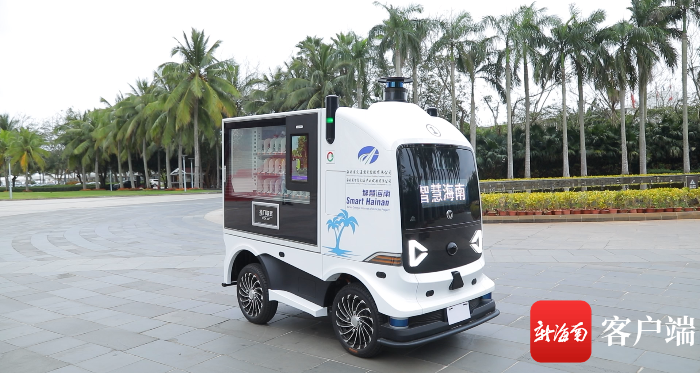 在博鰲東嶼島試運(yùn)營的自動駕駛零售車。記者 任桐攝