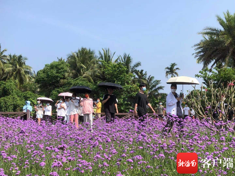 在南強·大路坡美麗鄉村,百畝花海花開正艷,用鮮花種植出來的博鰲亞洲論壇年會會標正式亮相,引來眾多游人打卡。花海里,馬鞭草成片綻放,紫色的花朵層層疊疊,蔚為壯觀;格桑花色彩繽紛、錯落有致,在微風的吹拂下泛起陣陣彩色“浪花”。花海旁的百香果采摘園,已進入開花期,預計6月初即可采摘。
