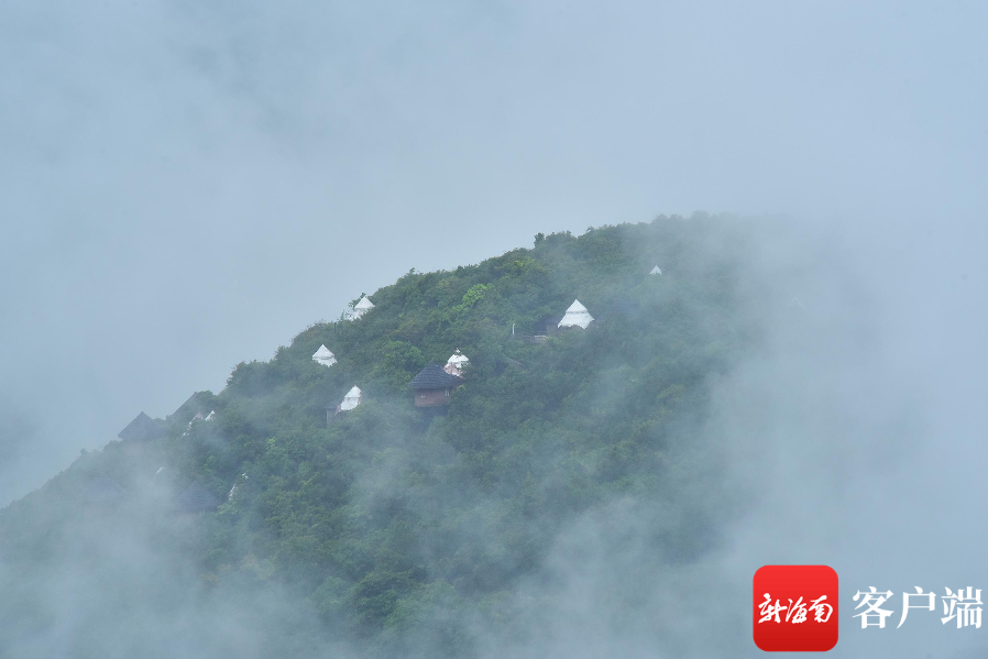 新海南客戶端、南海網(wǎng)、南國都市報5月2日消息(記者 沙曉峰)5月1日上午,大雨過后,三亞亞龍灣熱帶天堂山頂公園上云起霧涌,山霧彌漫。鳥巢度假村云霧繚繞,如夢如幻,宛如仙境。吸引景區(qū)游客駐足觀看。
