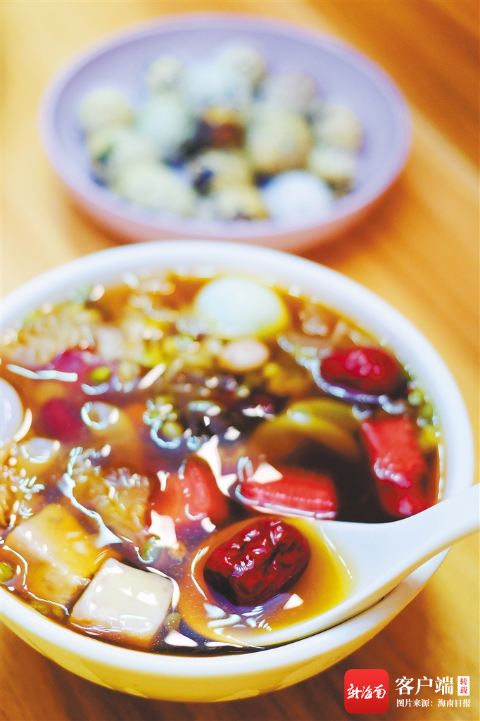 與此同時,常年高溫潮濕的氣候,讓本地人尋求溫和的食補方式調(diào)養(yǎng)身體。對瓊島兒女來說,清甜的糖水,解得了夏,也暖得了冬,歲月流逝、四時更甜的滋味,說到底就藏在一碗碗或清爽或滋補的糖水里。