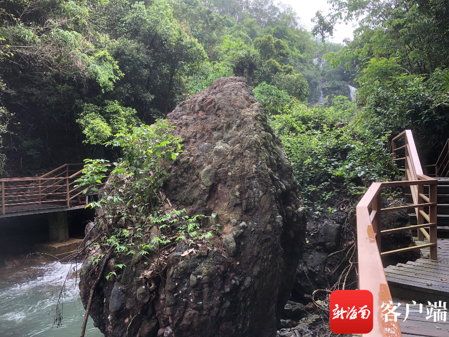 瓊海南牛瀑布引客來 提醒:汛期棧道易滑注意行走安全