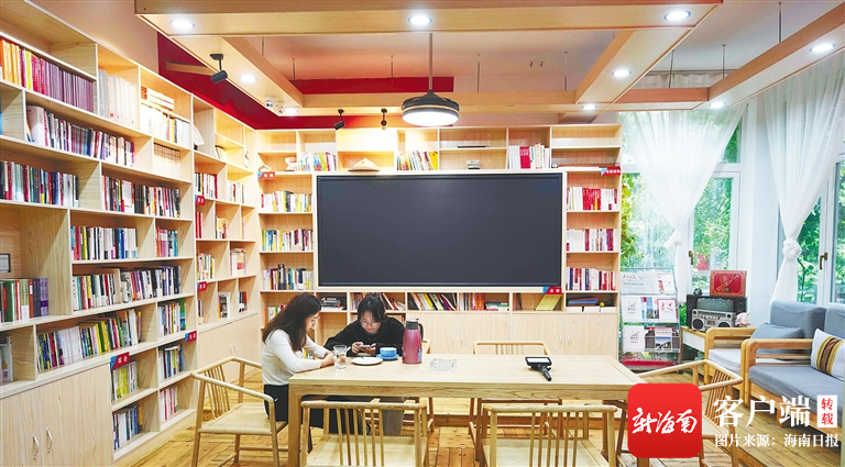 ?在臨高和新村“頭洋·海堂”漁耕文化鄉(xiāng)村旅游點(diǎn),游客在民宿書屋閱讀。海南日?qǐng)?bào)記者 陳元才 攝