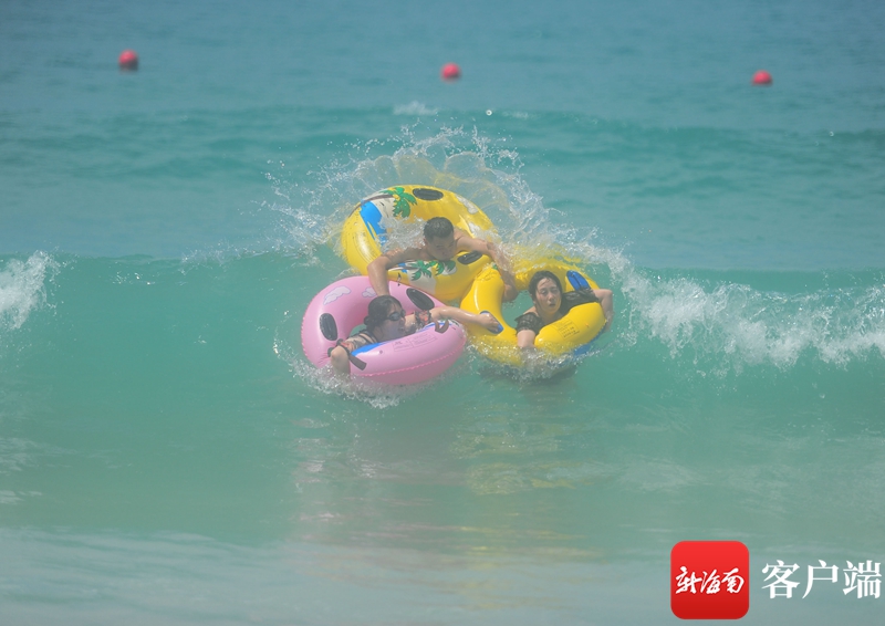 6月3日,市民、游客在三亞大東海“洗龍水”。記者 沙曉峰 攝