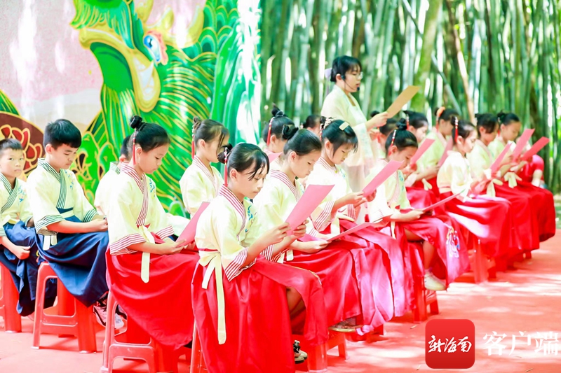 屯昌端午廟會活動的主題為“竹林霓裳 國風盛宴”,主要突出非遺傳承、民俗文化、國潮元素三個特點。為給廟會增添更豐富的看點,現場特別安排了漢舞表演、民樂表演、漢服走秀、國學誦讀等文藝匯演節目,引得大批市民游客駐足觀看。