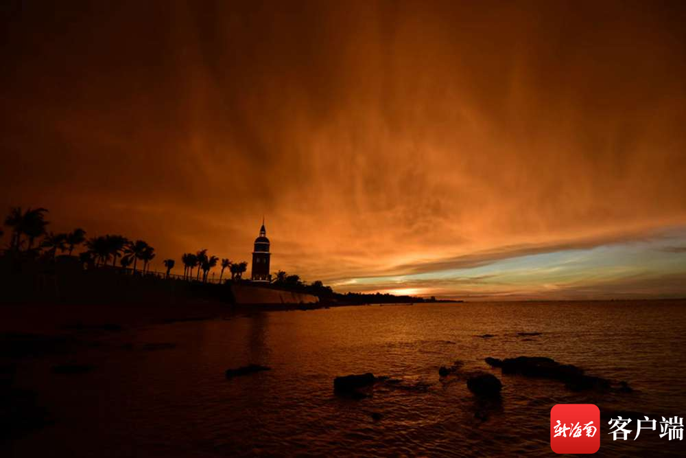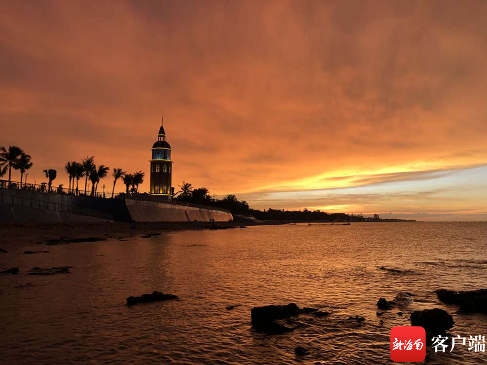海口灣絕美晚霞。記者陳衛(wèi)東攝