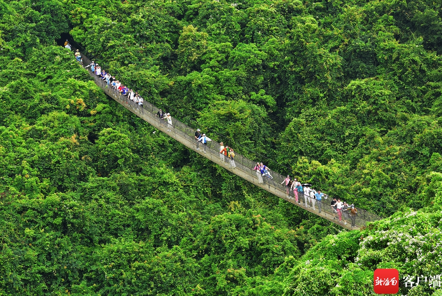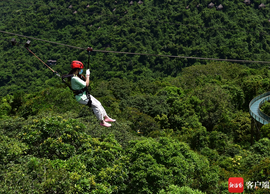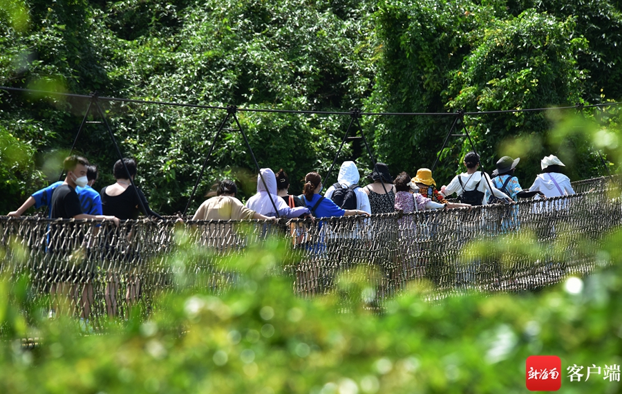 7月14日,游客在三亞亞龍灣熱帶天堂森林旅游區(qū)游玩。通訊員 黃慶優(yōu) 攝