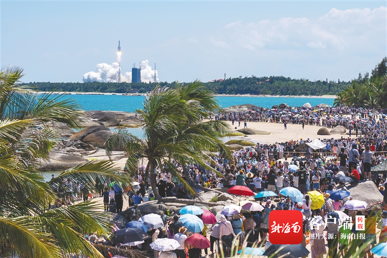 7月24日14時(shí)22分,搭載問天實(shí)驗(yàn)艙的長征五號B遙三運(yùn)載火箭,在中國文昌航天發(fā)射場成功點(diǎn)火發(fā)射。當(dāng)天,近50萬名游客涌入火箭發(fā)射所在地文昌市龍樓鎮(zhèn),出現(xiàn)“一房難求”“一桌難訂”的爆滿情況。