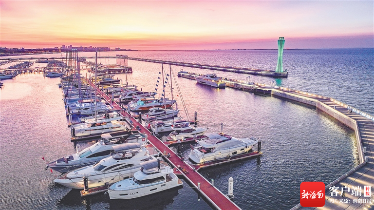 停泊在海口市國家帆船基地公共碼頭的消博會參展游艇。 海南日報記者 陳元才 攝