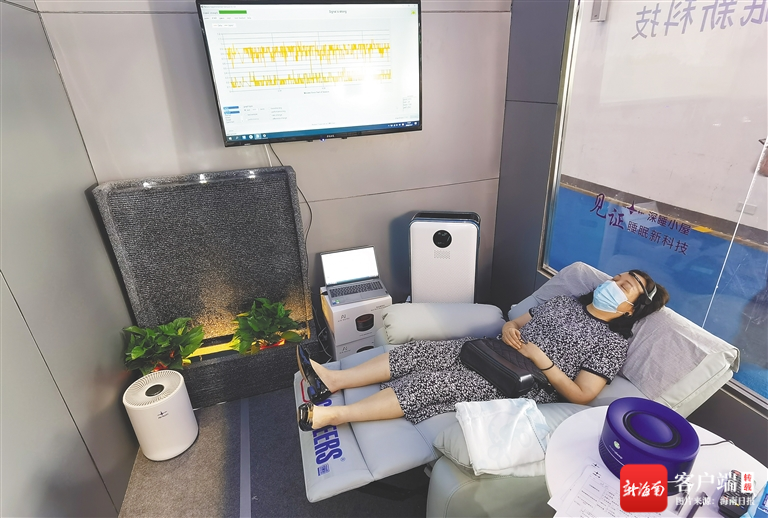 “這位女士,要起來了,后面還有其他觀眾在排隊。”7月27日下午,在工作人員柔聲的提醒中,于消博會1號館“深度睡眠小屋”中體驗的專業觀眾孔健兒從睡夢中醒來,發現自己居然在聲音嘈雜的展館里熟睡了20分鐘。