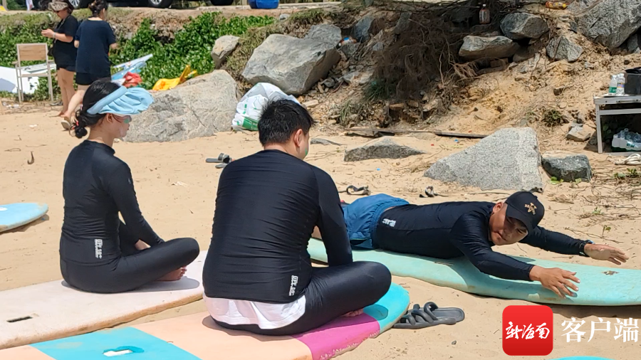 沖浪教練對游客進行下水前的培訓。張野攝