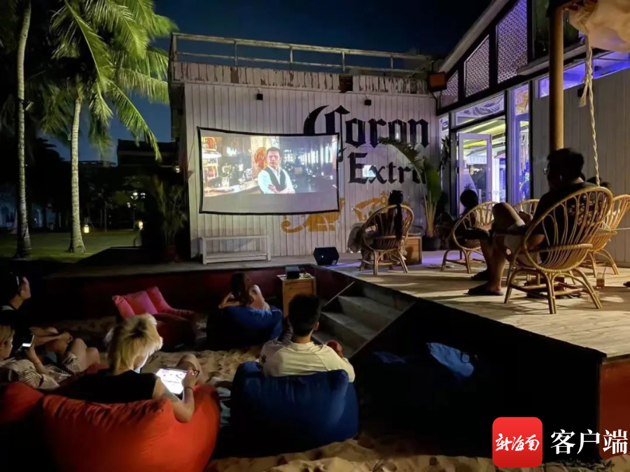 夜幕降臨,游客在神州半島的沙灘看熒幕電影。萬寧旅文局供圖