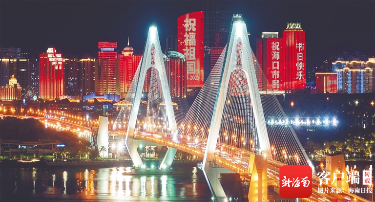 10月1日,海口濱海大道樓宇上演國慶主題燈光秀。海南日報記者 封爍 攝