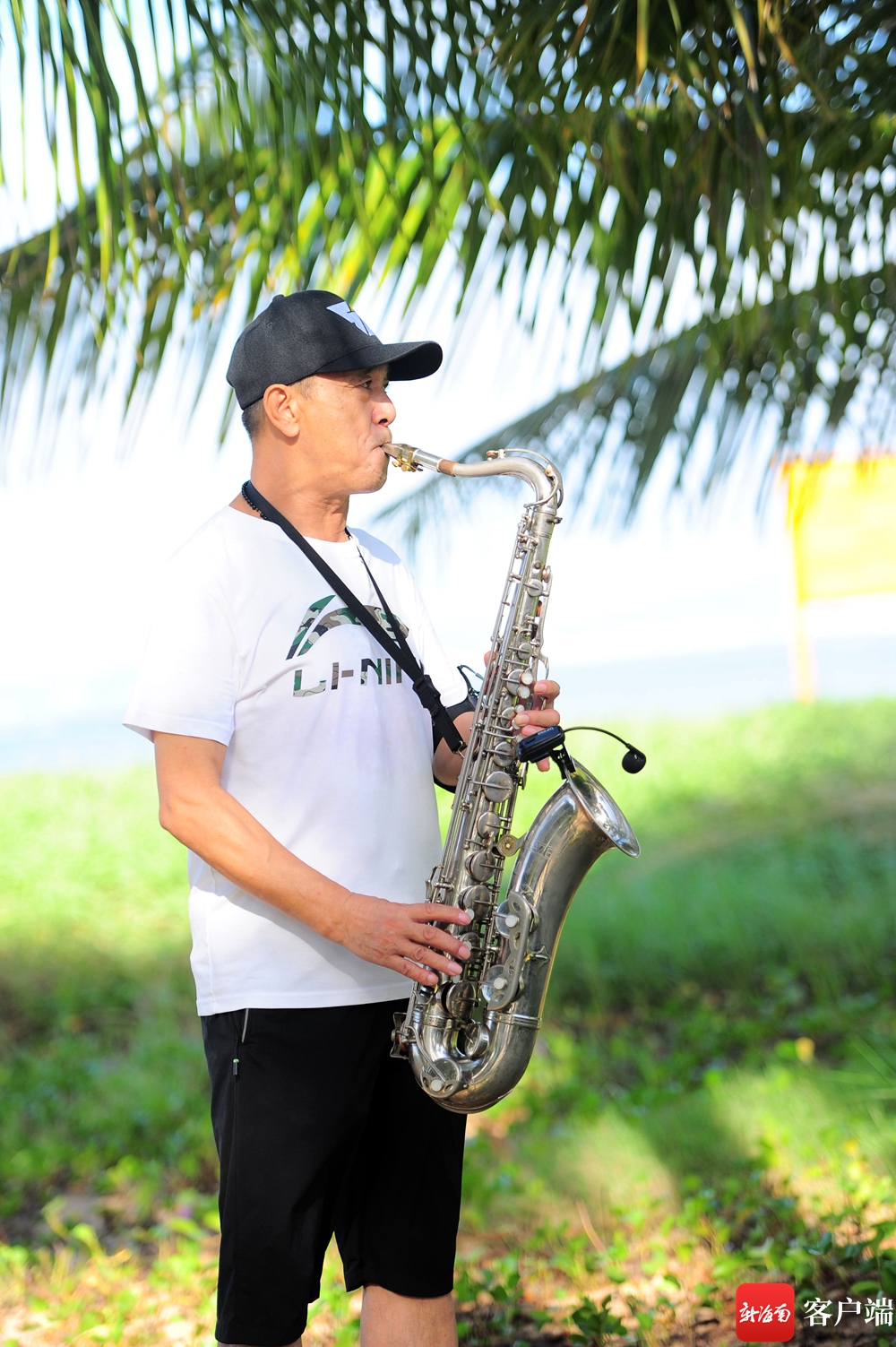 10月25日,海南三亞,“候鳥”老人在海灘上演奏薩克斯。記者 沙曉峰 攝