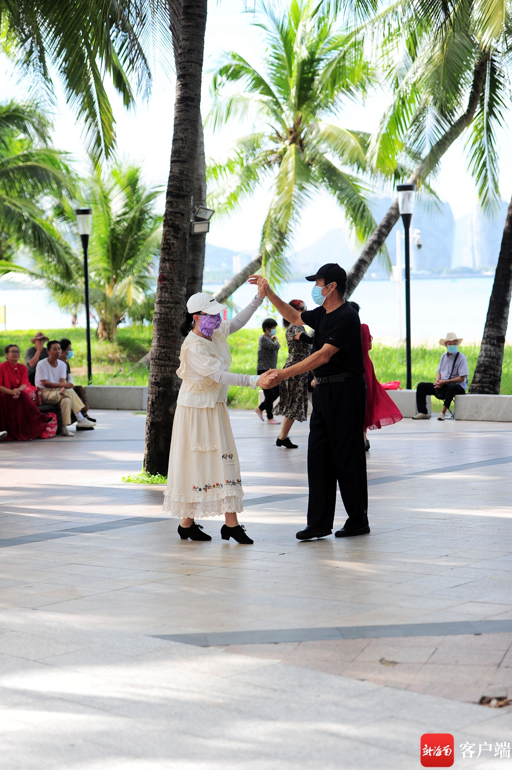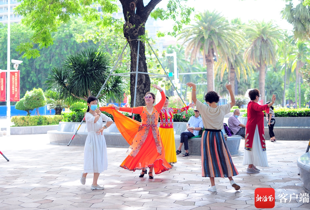 10月25日,海南三亞,“候鳥”老人在三亞灣跳舞。記者 沙曉峰 攝