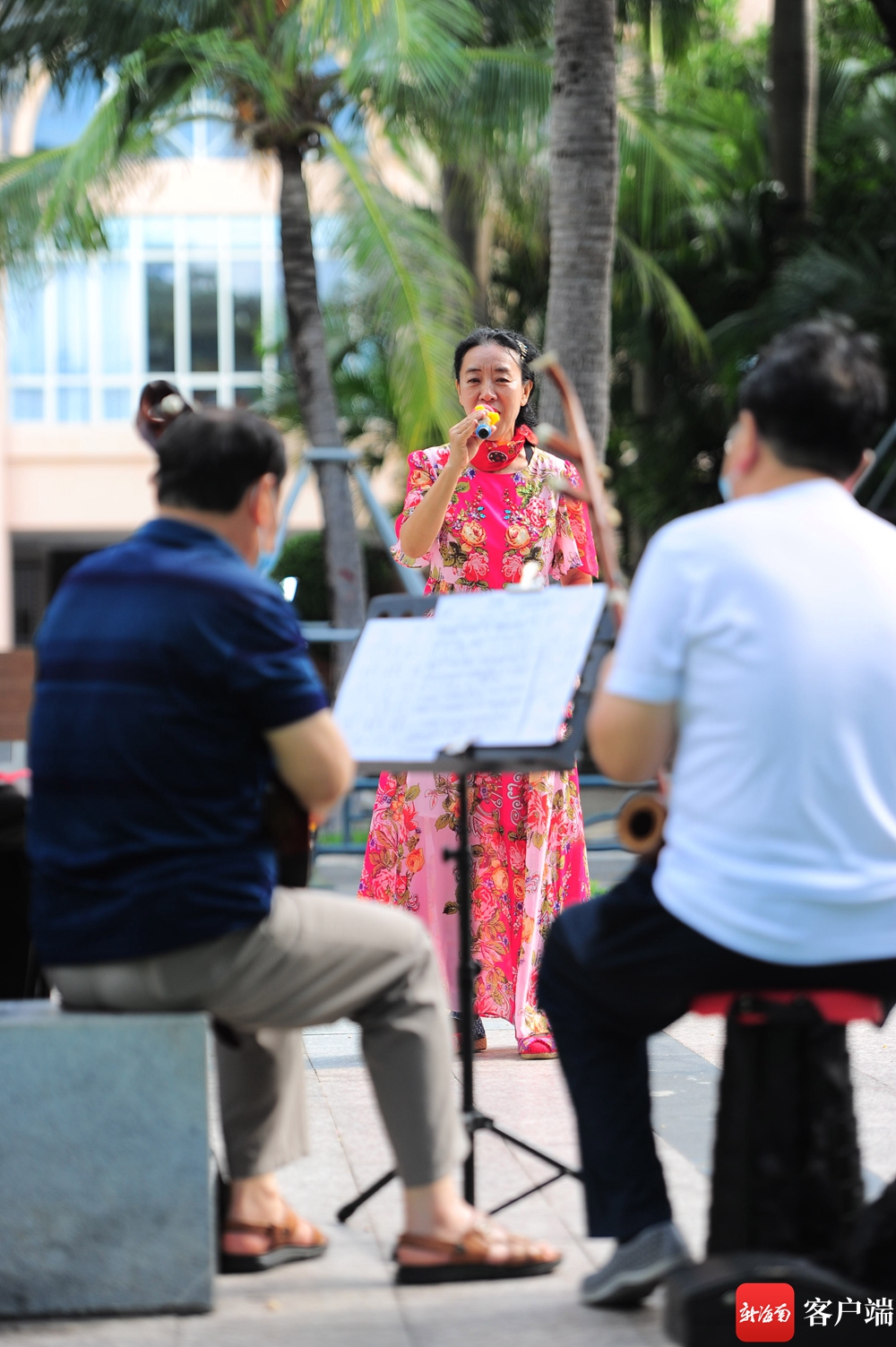 10月25日,海南三亞,“候鳥”老人在三亞灣放聲高歌。記者 沙曉峰 攝