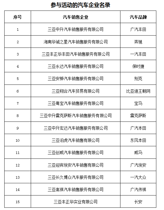 在三亞市相關(guān)汽車銷售企業(yè)購置符合國家相關(guān)法規(guī)要求的機(jī)動車(包括新能源車和燃油新車,不含二手車)車主,可攜帶相關(guān)材料在最近的建設(shè)銀行三亞分行網(wǎng)點進(jìn)行消費券申請登記。材料經(jīng)審核符合要求后,可按照購車金額領(lǐng)取2000元-6000元面額不等的消費券。