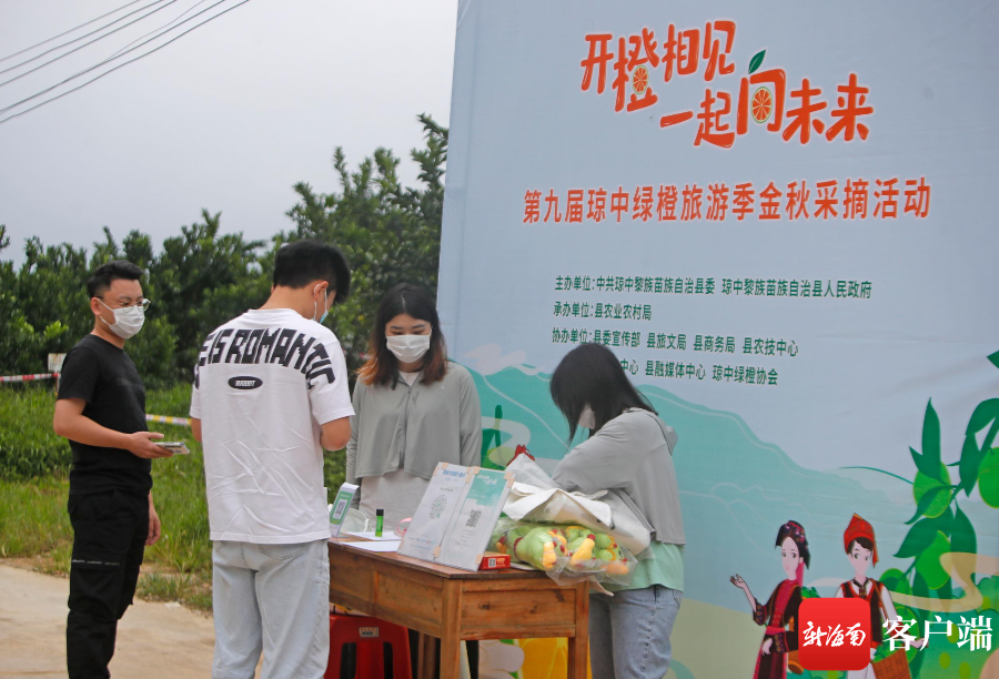瓊中綠橙采摘活動(dòng)報(bào)名現(xiàn)場。記者 汪承賢 攝