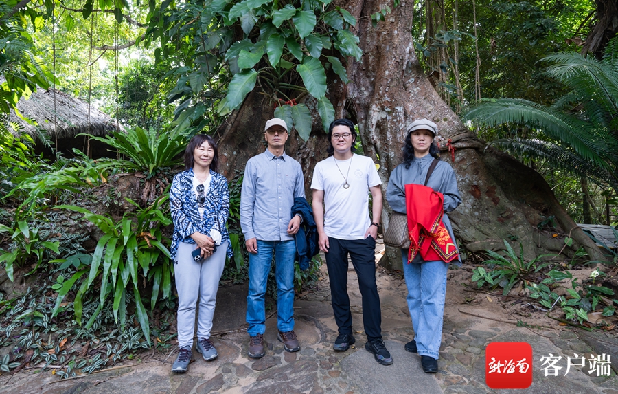 “走進黎族”文化名家采風(fēng)團在呀諾達熱帶雨林文化旅游區(qū)合影。從左依次為:馮晏、黃梵、胡竹峰、林雪。記者 李昊 攝