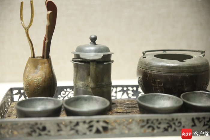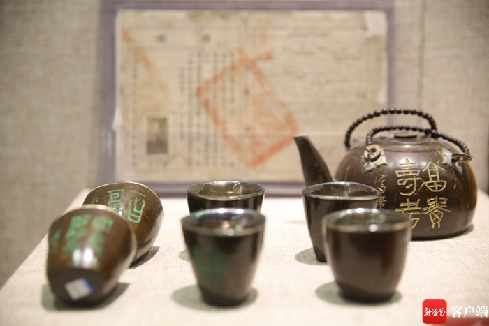 蔡於良告訴記者,此次展出椰雕是他從世界各地收藏而來,海南椰雕工藝歷史悠久,明清時期,椰雕工藝逐漸成熟,從明代中期開始把椰雕與銀錫金屬的結合,椰雕溫酒壸、提梁壺,執(zhí)壺、蓋碗、餐碗,乳茶碗、盤、公道杯、小酒杯都要鑲嵌銀、錫金屬。“本次展出椰雕東坡赤壁游圖銀鎏金乳茶杯是從日本花了40多萬買回來的,是一件清朝時期椰雕品。”