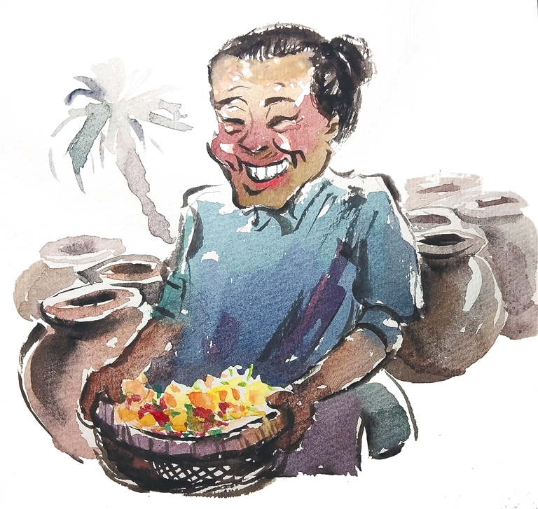 做辣椒醬的海南阿婆。吳源 繪