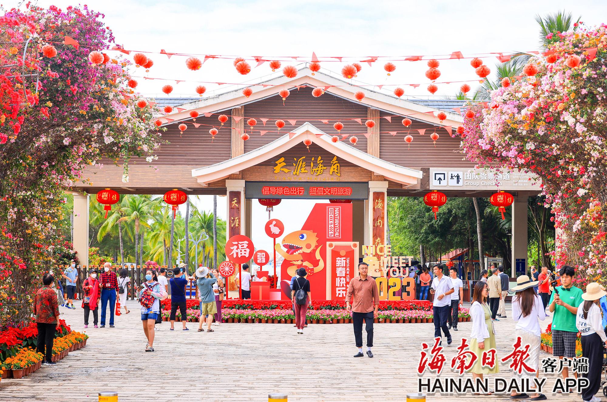 ?春節期間,三亞天涯海角景區張燈結彩,處處充滿了濃厚的“年味”。